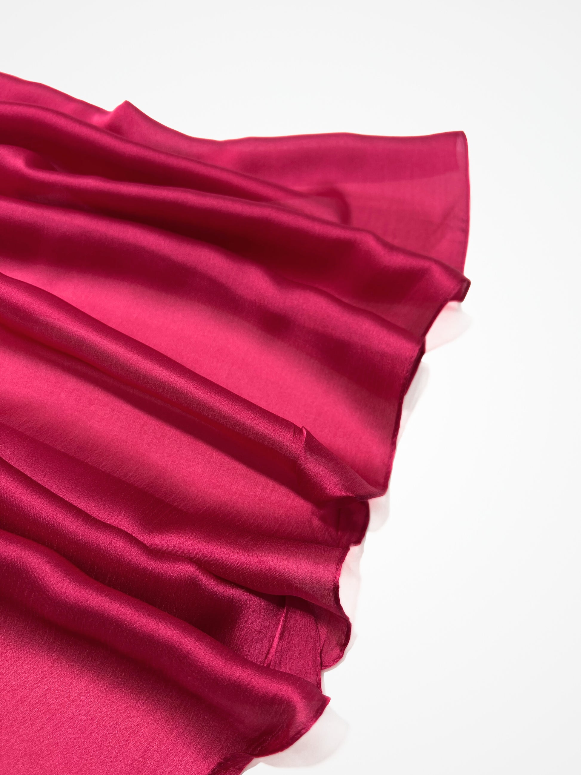 Luxurious and sophisticated large silk blend stole featuring a glossy finish and a monochrome silhouette, designed to wrap you in its luminous beauty and timeless charm. This makes it the ideal choice for sophisticated outfits and flawless evening looks. The glossy finish gently captures the light, while the clean, sophisticated silhouette adds an aura of allure to any outfit. Not just an accessory, but a statement piece that speaks to your personality and style. A versatile style statement in one accessory, perfect for being worn as a shawl, shoulder cover, or scarf, ensuring a fresh and refined look every time. Available in a carefully curated color palette to inspire: from timeless classics like white, black, and beige, to bold and vibrant shades like green, teal, aquamarine, pink, magenta, wine, and red. Each color is an opportunity for self-expression, a way to reinvent yourself and leave a lasting impression on every occasion. Perfect for sparkling evenings, unforgettable celebrations, or moments when your look deserves to be the focal point. The silky texture and premium material blend gently caress the skin, while the essential design makes it a striking choice for elegant dresses, tailored suits, or cocktail outfits. An accessory that doesn’t just complete your wardrobe, but transforms it. Ideal for those who seek something unique, designed to surprise, captivate, and leave a lasting impression. This elegant silk-blend stole becomes the thread that weaves together a style that evolves, dares, and celebrates beauty in every form.